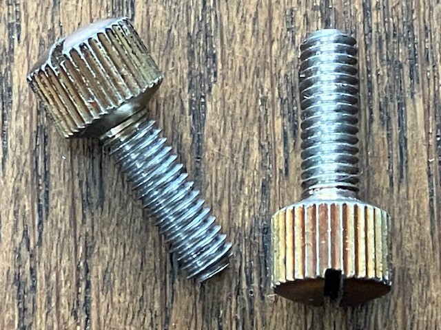 - 手回し、スクリューネジ 全長18.8mm ネジ径3.9mm 2本 ゴールド、黄金色系 使用品 家具類 パソコン PC 送料無料 底値