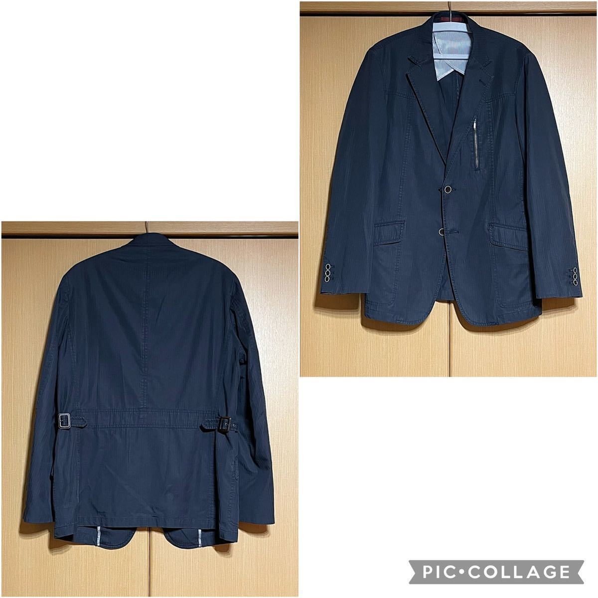 - シャドーストライプ本切羽スポーツドライビングジャケットXLネイビーブレザー紺ブレクールビズビジネスビジカジビズカジGOLFゴルフ送料\600