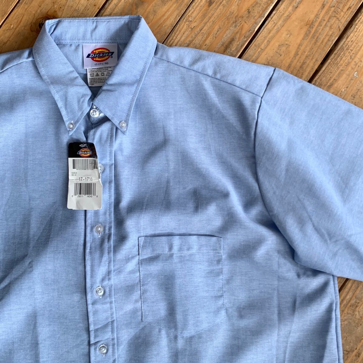 - 新品 ディッキーズ Dickies ボタンダウン半袖シャツ メンズ 17-17_1/2サイズ シャンブレー ライトブルー ワーク タグ付き未使用 T2422