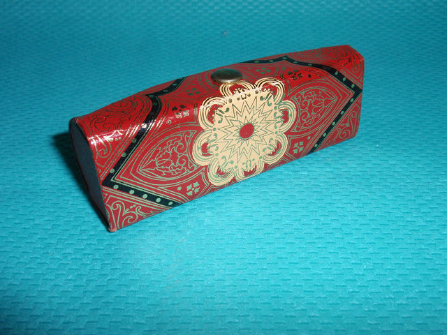 - リップケース★イタリア製★鏡付き★印鑑入れ★小物入れ★口紅入れ★化粧小物★赤系金色模様★リップ入れ★アンティーク★