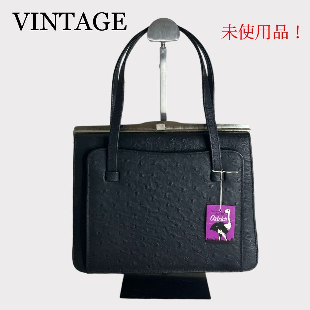 > ハンドバッグ 和装 エンボッシングレザー 型押し革 オーストリッチ シルバー金具 未使用品 ヴィンテージ デッドストック ブラック