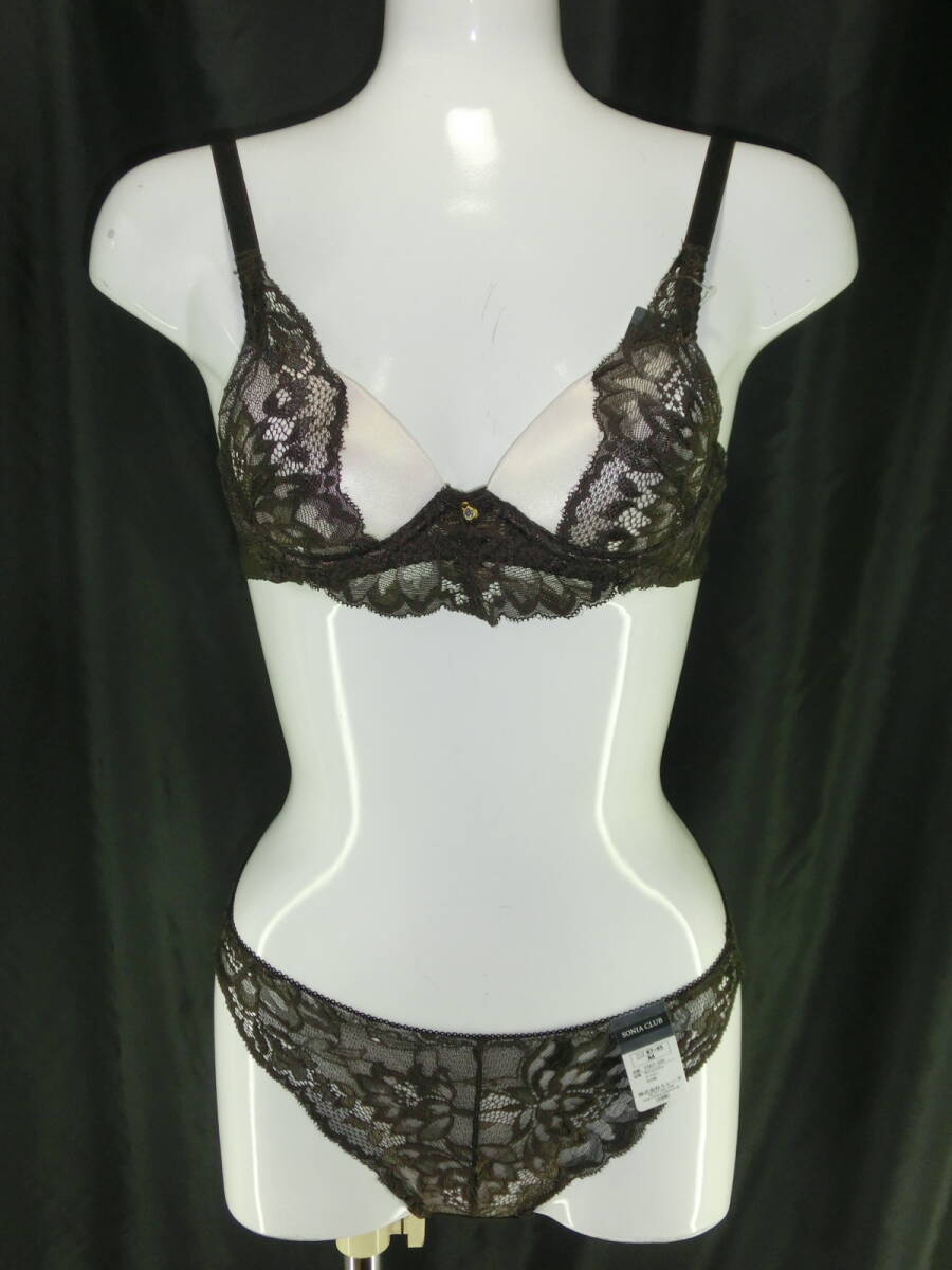 - ☆【AA70 M】ブラウン 配色デザインレースブラジャーショーツセット《85-1》