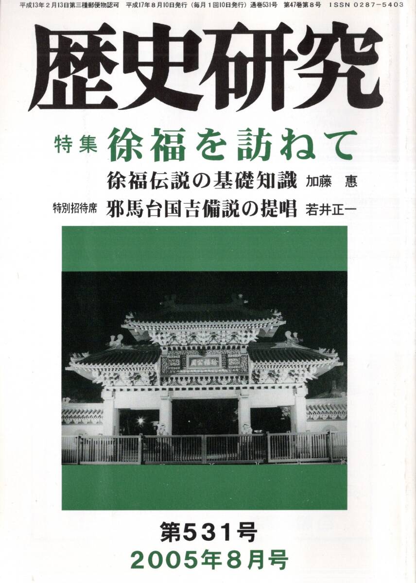 - ※歴史研究第531号特集徐福を訪ねて:基礎知識=加藤惠・神奈川に於ける徐福伝説・丹後徐福考・鶴になった富士山の徐福・徐福を訪ねて等
