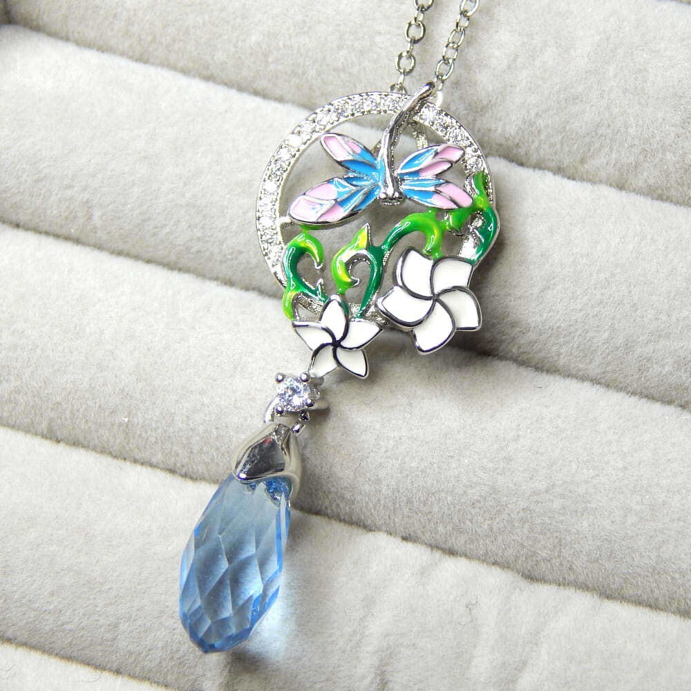 - 残り1点★新品★送料無料 極上の逸品 レディース ジルコニア 絢爛 限定 蜻蛉&フラワー CZダイヤモンドネックレス シルバー925 プラチナ仕上