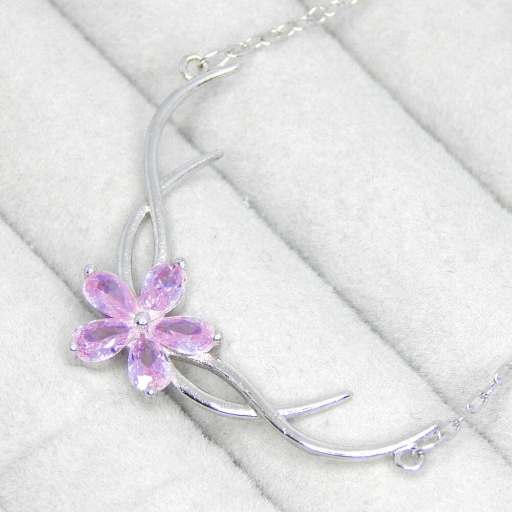 - 新品★送料無料 極上の逸品 レディース 絢爛 厳選 希少品 桜 CZピンクダイヤモンドネックレス ジルコニア プラチナ仕上 シルバー925 限定
