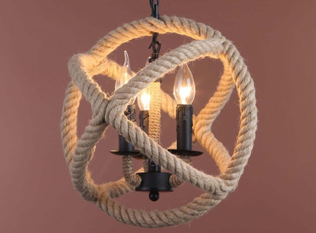 > OTD 麻 ロープ ペンダントライト 吊り下げ ヴィンテージ インテリア 装飾 天井 照明器具 ランプ オシャレ カフェ【Brown-35CM】