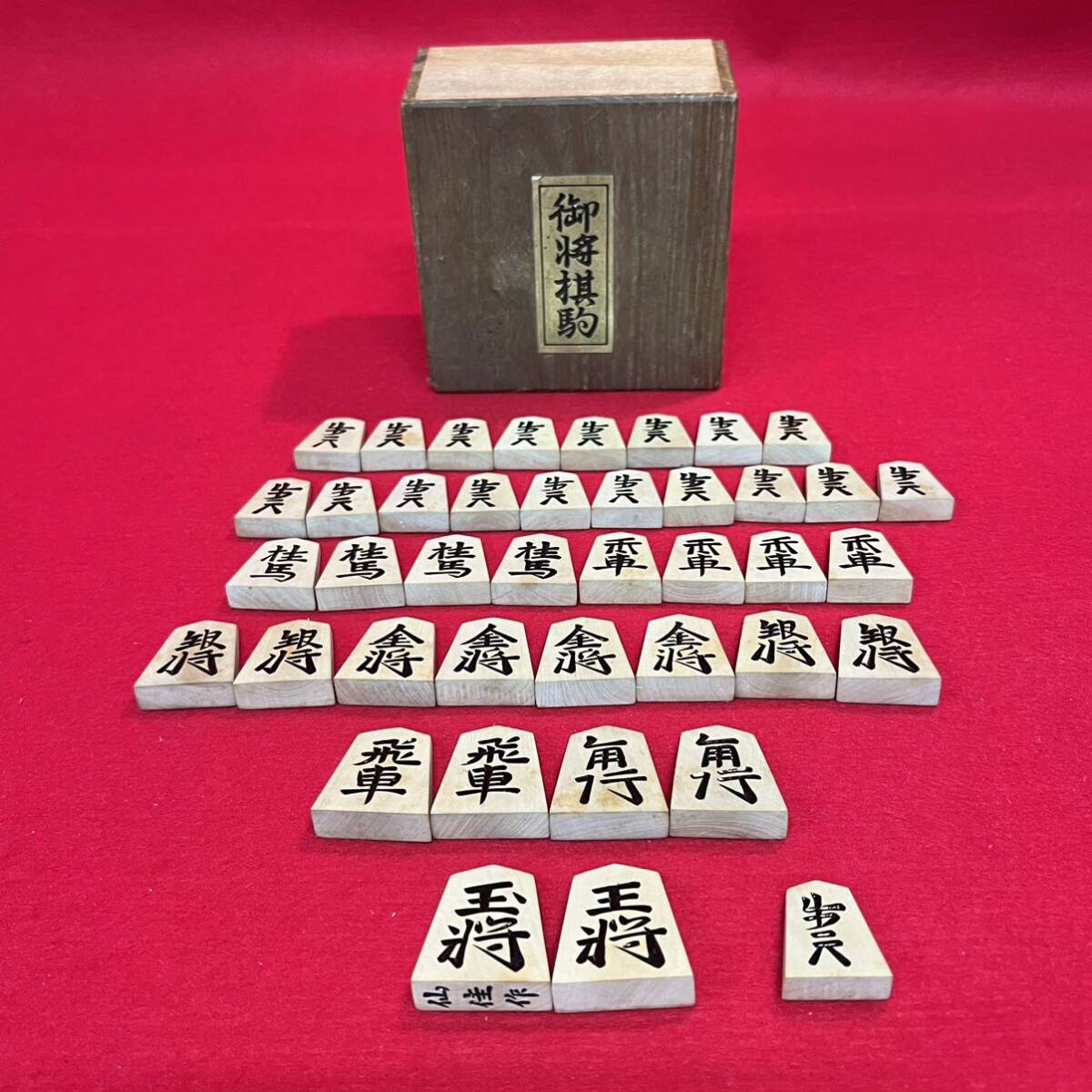 ☆美品☆ 御将棋駒 仙佳作 桐箱入 40駒余り歩 在銘 彫駒 錦旗 時代物(04136F