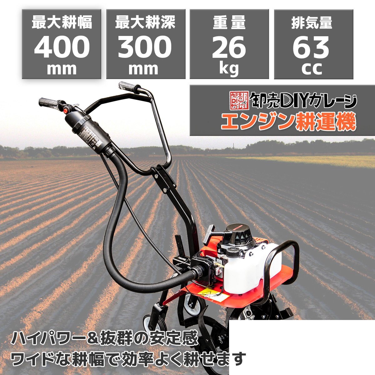- パワーアップハンドル 高調節可能耕幅400mm 家庭用63cc エンジン式 耕運機 耕うん機 耕し機 つちかき機 土かき機 【即納】