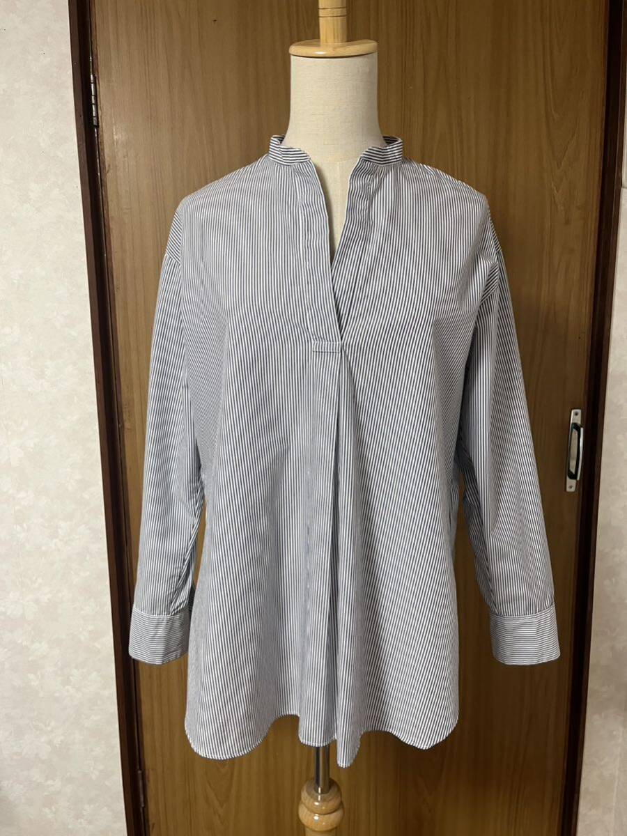 > UNIQLO エクストラファインコットンスタンドカラーシャツ ユニクロ レディース S ストライプ