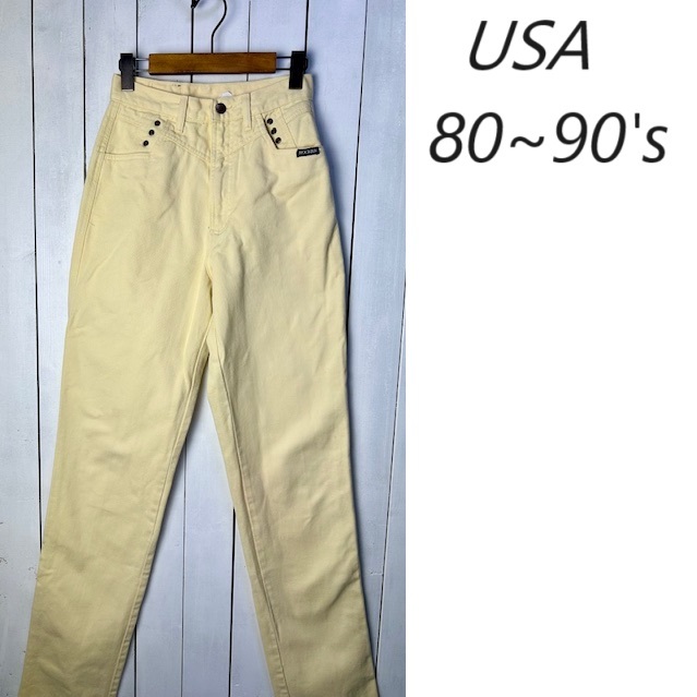 > USA古着 80s~90s デザイン カラーデニムパンツ 27/5 薄黄色 ROCKIES オールド ヴィンテージ アメリカ古着 ワイドテーパード ●47
