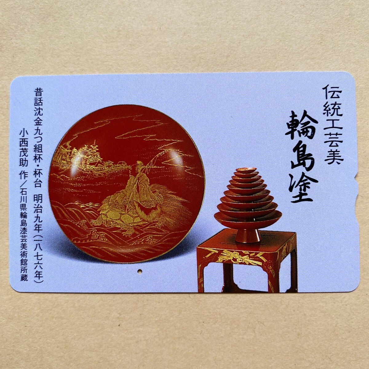 > 【使用済】 ふみカード 伝統工芸美 輪島塗 昔話沈金九つ組杯・杯台 明治九年(一八七六年) 小西茂助