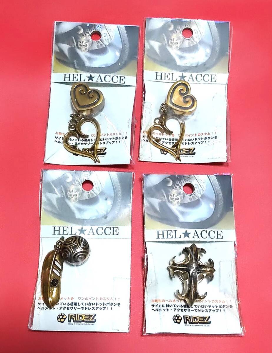 > RIDEZ ライズ ヘルメット・アクセサリー ジェットヘル ドットボタン スカル 羽根 ハート 4点セット