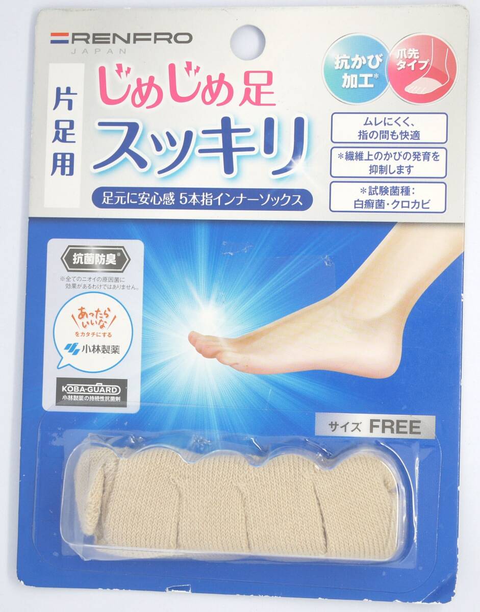- 【送料140円/未開封】じめじめ足 スッキリ 5本指インナーソックス 小林製薬の持続性抗菌剤 靴下やタイツに重ね履き用 ベージュ サイズ FREE