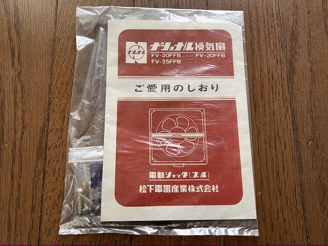 - ナショナル 換気扇 ご愛用のしおり 電動シャッタ(プル) 未開封 取付金具入り 昭和 当時物 横12.8cm 縦18.4cm 送料無料 底値
