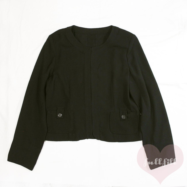 - 古着 ジャケット 昭和 レトロ モード モノトーン 黒 羽織 ノーカラー 無地 ブラック ビンテージ ヴィンテージ レディース古着 used カーデ