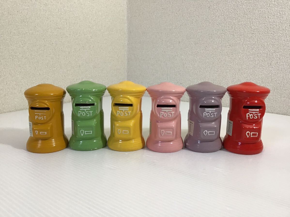 - 郵便ポスト 貯金箱 6個セット 陶器 高11cm 直径6.5cm パステルカラー 昭和レトロ 丸型 インテリア 置物