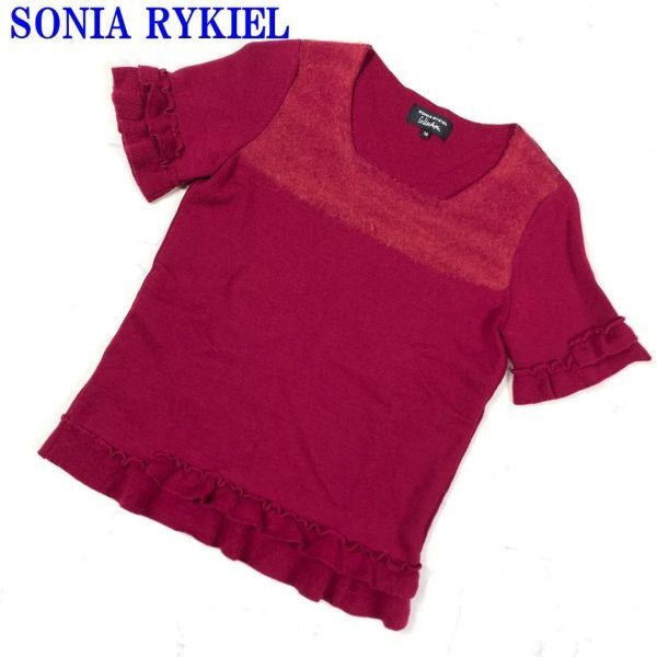 - ソニアリキエルウール100%半袖切り替えSONIA RYKIEL カジュアル フリルニットレッド38 C9676