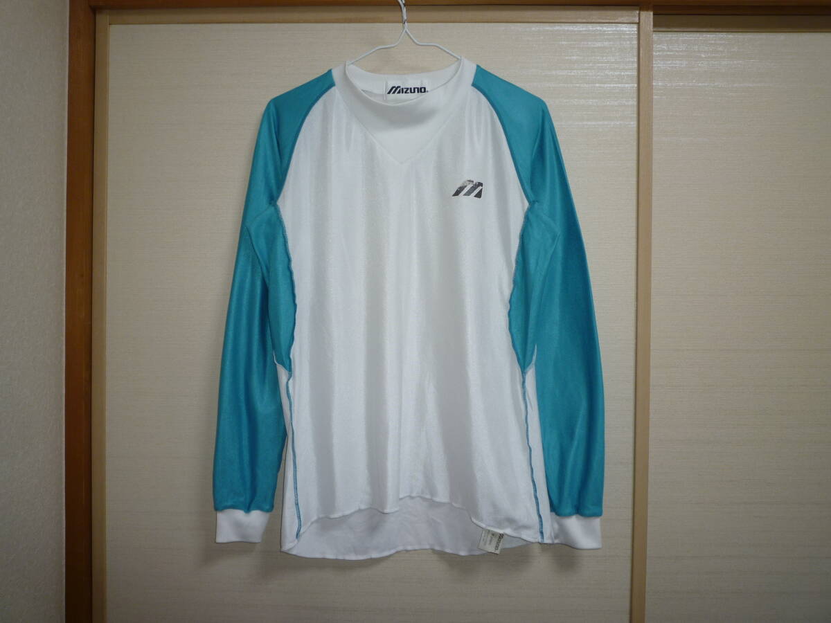 - ミズノ 長袖シャツ 白×ライムグリーン Mサイズ