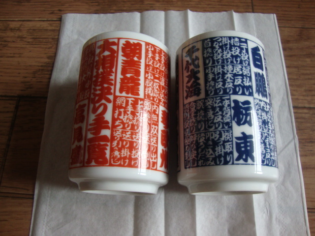 - ★ 未使用 湯呑み 大相撲決り手一覧 2客セット 朝青龍 白鵬 稀勢の里 魁皇 琴欧洲 栃東 高見盛 千代大海 大相撲 ★