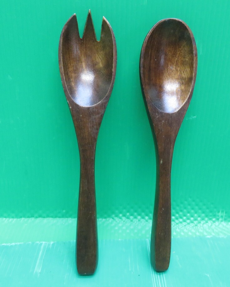 - N-112■木製 サラダサーバー スプーン 全長約250mm&フォーク 全長約260mm