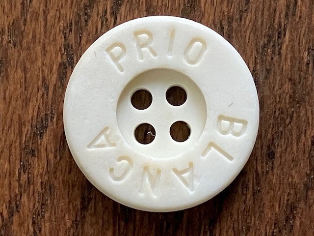 - PRIO BLANCA プリオ・ブランカ 樹脂製 ロゴ入り ボタン 径1.45cm 厚2.9mm ホワイト、白系 未使用 昭和 当時物 送料無料 底値