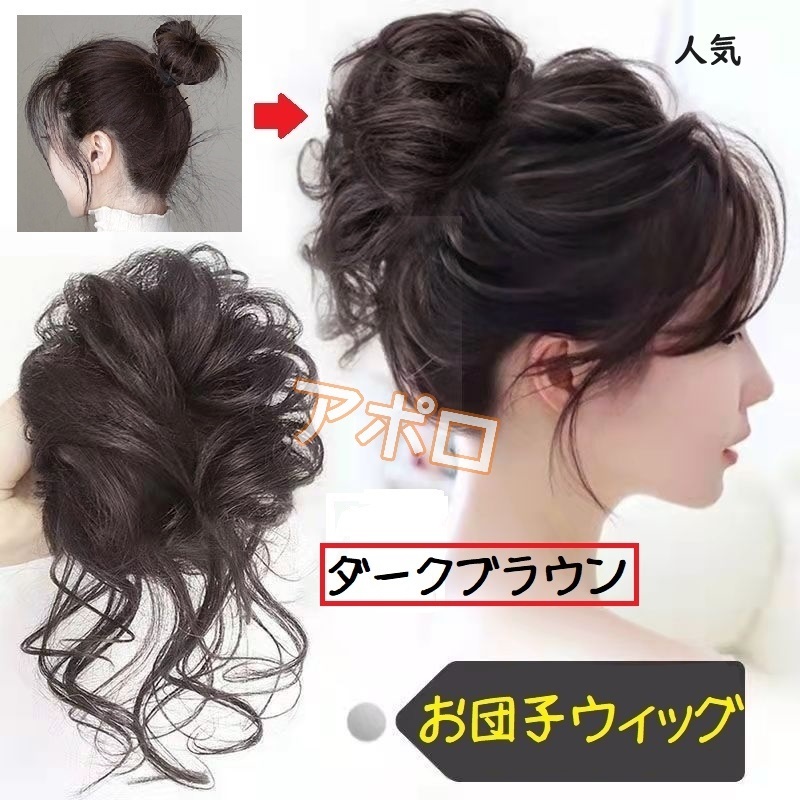 - ●普通郵便発送● お団子ウィッグ ダークブラウン つけ毛 ヘアアクセサリー 茶色 No.907 A
