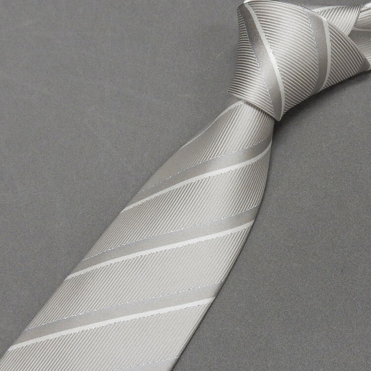 - 西陣織 フォーマルネクタイ◇銀系×銀ラメ◇ストライプ◆シルク100%◇日本製◆礼装◆結婚式・披露宴 メール便可 njr07