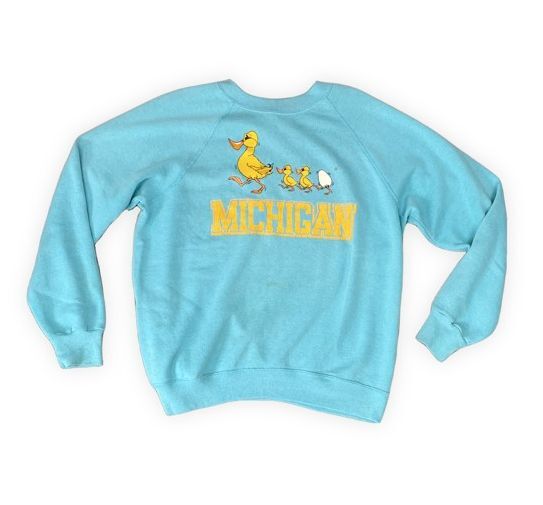 - 80's 90's 米国製 バセットウォーカー BASSETT-WALKER BW スウェット ミシガン MICHIGAN アヒル ライトブルー L [l-0927]