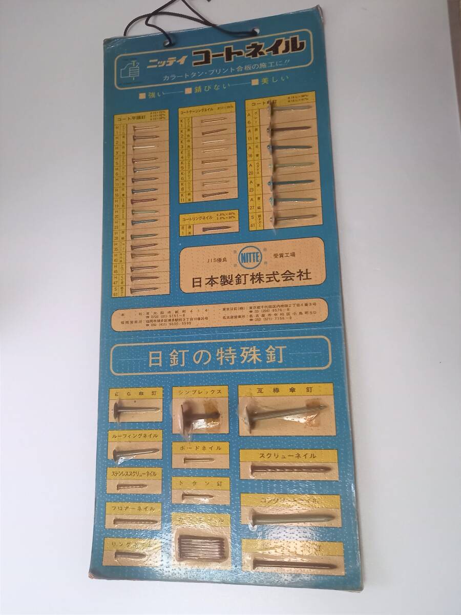 - ニッテイ 日本製釘株式会社 NITTE コートネイル ねじ 釘 特殊釘 店頭展示 店舗 サンプル 見本 台紙付き 当時もの インテリア