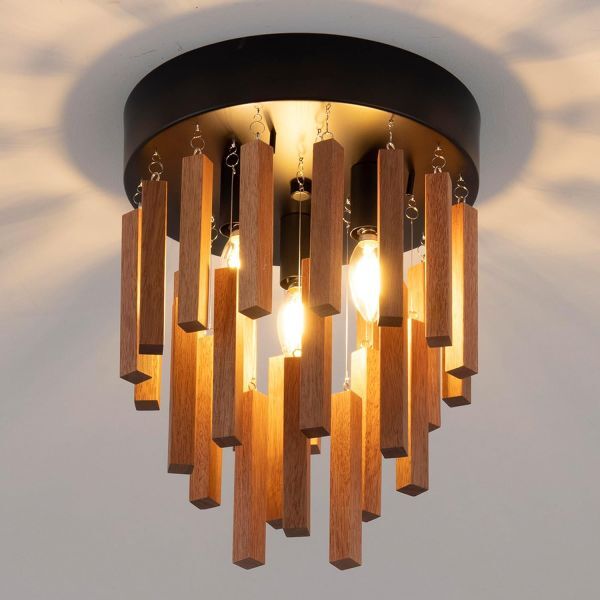 - chedar シーリングライト おしゃれ 北欧 3灯 E12 木 天井照明 LED 明るい モダン ダイニング インテリア【ブラック】