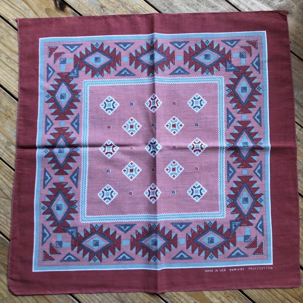 - 送料無料 Vintage ネイティブ柄 バンダナ Made in USA フラクタル 万華鏡 総柄 デザイン ハンカチ アメリカ仕入れ 雑貨 ヴィンテージ A0971