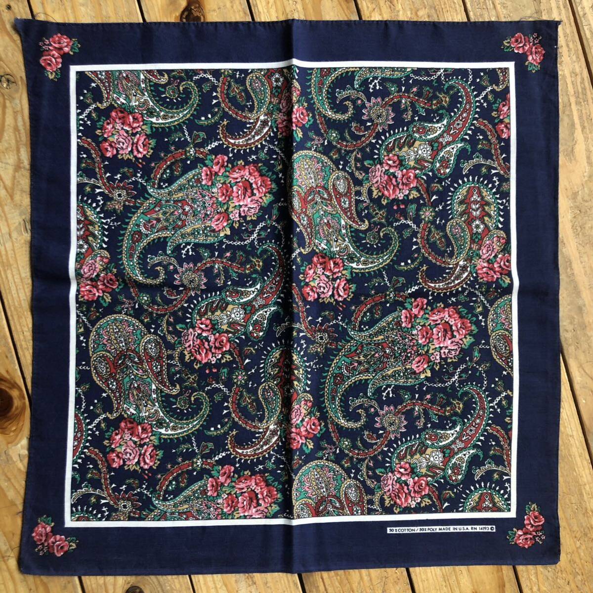 > 送料無料 Vintage バンダナ ペイズリー柄 ボタニカル 花柄 Made in USA ブルー アメリカ仕入れ 雑貨 ハンカチ ヴィンテージ A0985