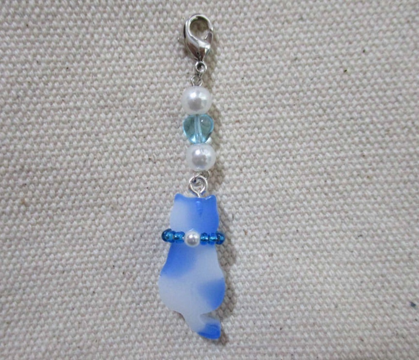- ハンドメイド レジン 猫 チャーム 白 青 ビーズ ネコ ペット ねこ ミニチュア ドールハウス 1/6ドール 動物 ドール用 インテリア 雑貨