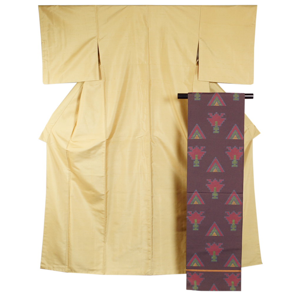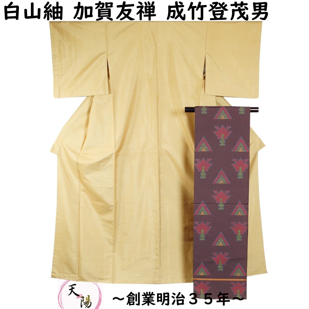 - 着物セット 白山紬・織悦 洒落袋帯 2点 セット 本加賀友禅 成竹登茂男 無地 落款 証紙付き 中古 正絹 着物 リサイクル着物 京都きもの天陽