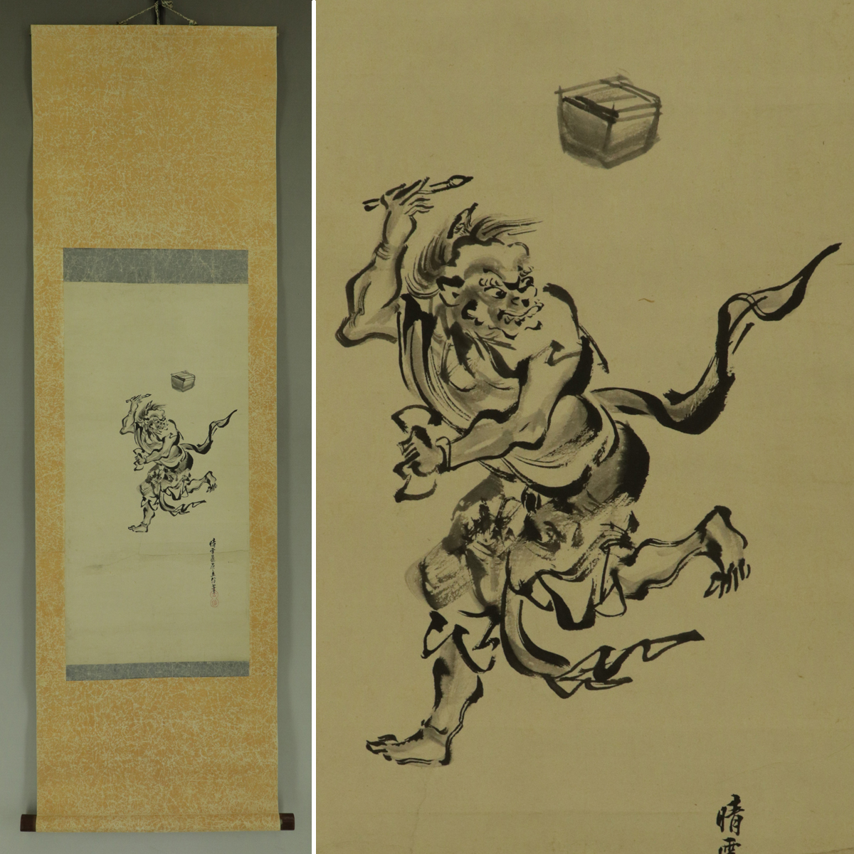- 希少【模写】狩野永悳 (立信)【鬼】◆紙本◆合箱◆掛軸 t07095