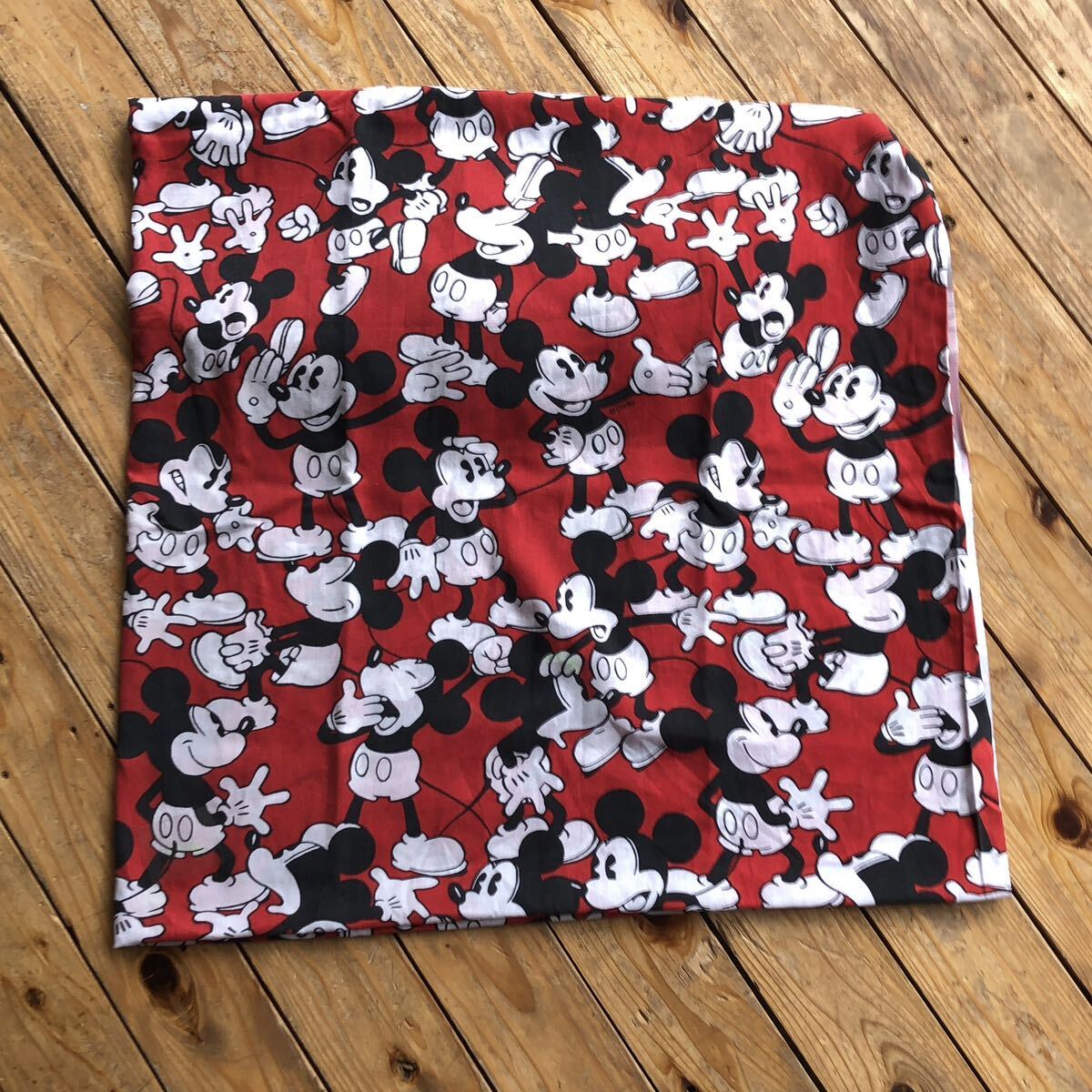 - USA ヴィンテージ ベッドシーツ Disney ディズニー ミッキー Mickey レッド リメイク生地 ボックスシーツ アメリカ仕入 総柄 B1991