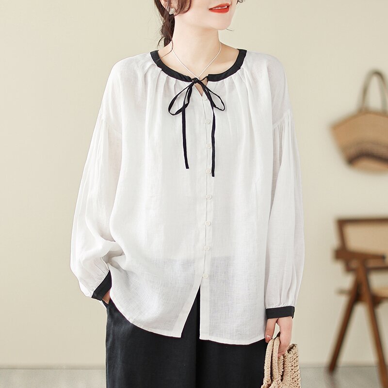 - 夏新品*カジュアル シャツ ブラウス レディース 七分袖 シャツ 上品 トップス チュニック 綿麻 大きいサイズ リネンシャツ*ホワイト