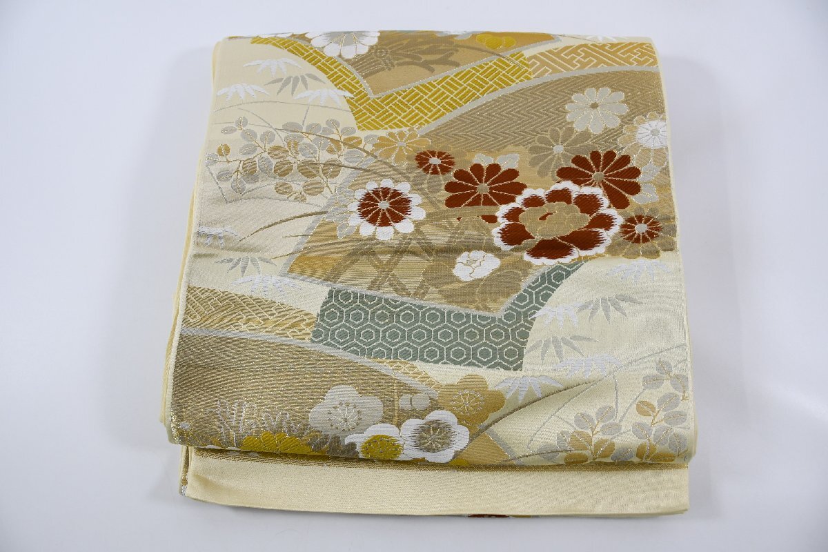 > 袋名古屋帯 未仕立て 扇面 花 帯丈417cm ★着物屋 ne-9711 桜庭呉服店