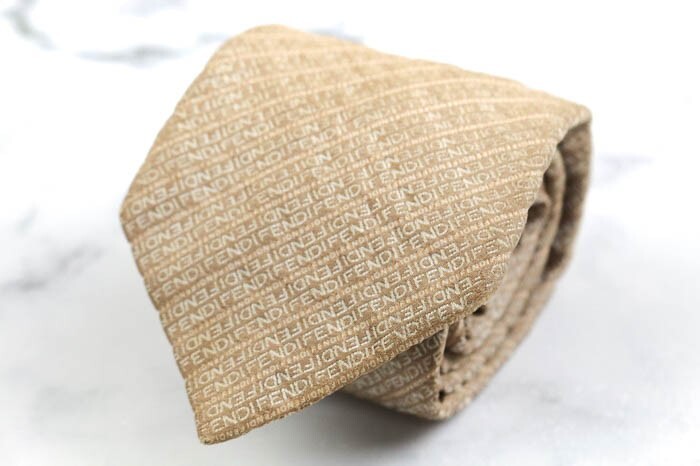 - フェンディ シルク ロゴ ストライプ柄 総柄 イタリア製 ブランド ネクタイ メンズ ベージュ FENDI