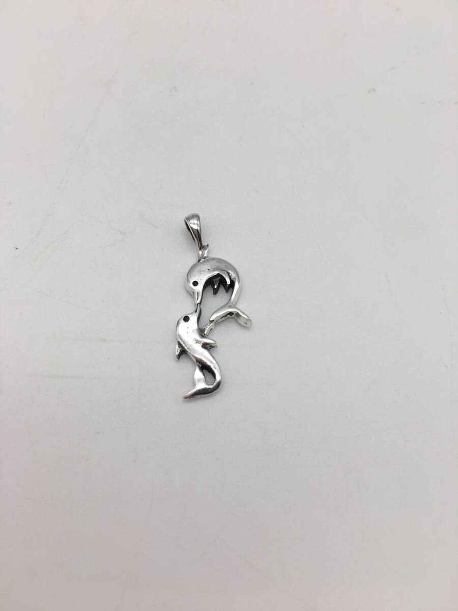 - 【2004】シルバーアクセサリー ペンダントトップ 925 イルカ2匹 125-2 *【350101000004】