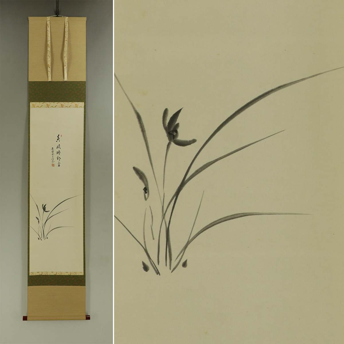 - 【模写】林恵鏡【墨蘭図】◆紙本◆合箱◆掛軸 t07108a