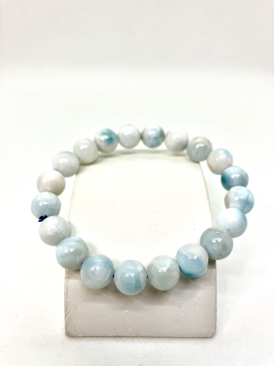 - 【新品】アイスラリマーブレスレット*世界三大ヒーリングストーン*パワーストーン*ラウンド*一点もの*ラリマー*腕輪*ドミニカ共和国