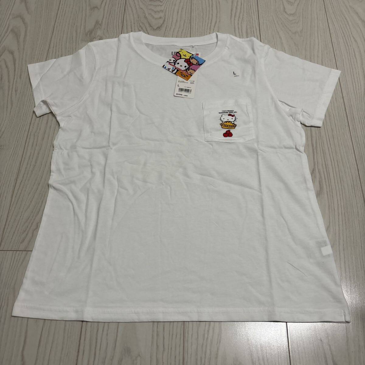 - 未使用●UNIQLO×Hello Kitty コラボ レーション/ハロー キティ ちゃん Tシャツ/半袖/ユニクロ/白/Lサイズ/トップス/ホワイト ★1087-4