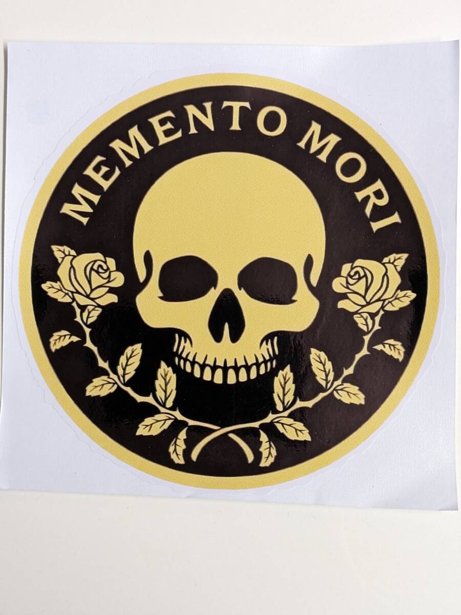- 【レア激渋♪ MEMENTO MORIメメントモリ・ゴールド薔薇158mmx158mm】スカルステッカー 骸骨ステッカー ヘルメット 格言