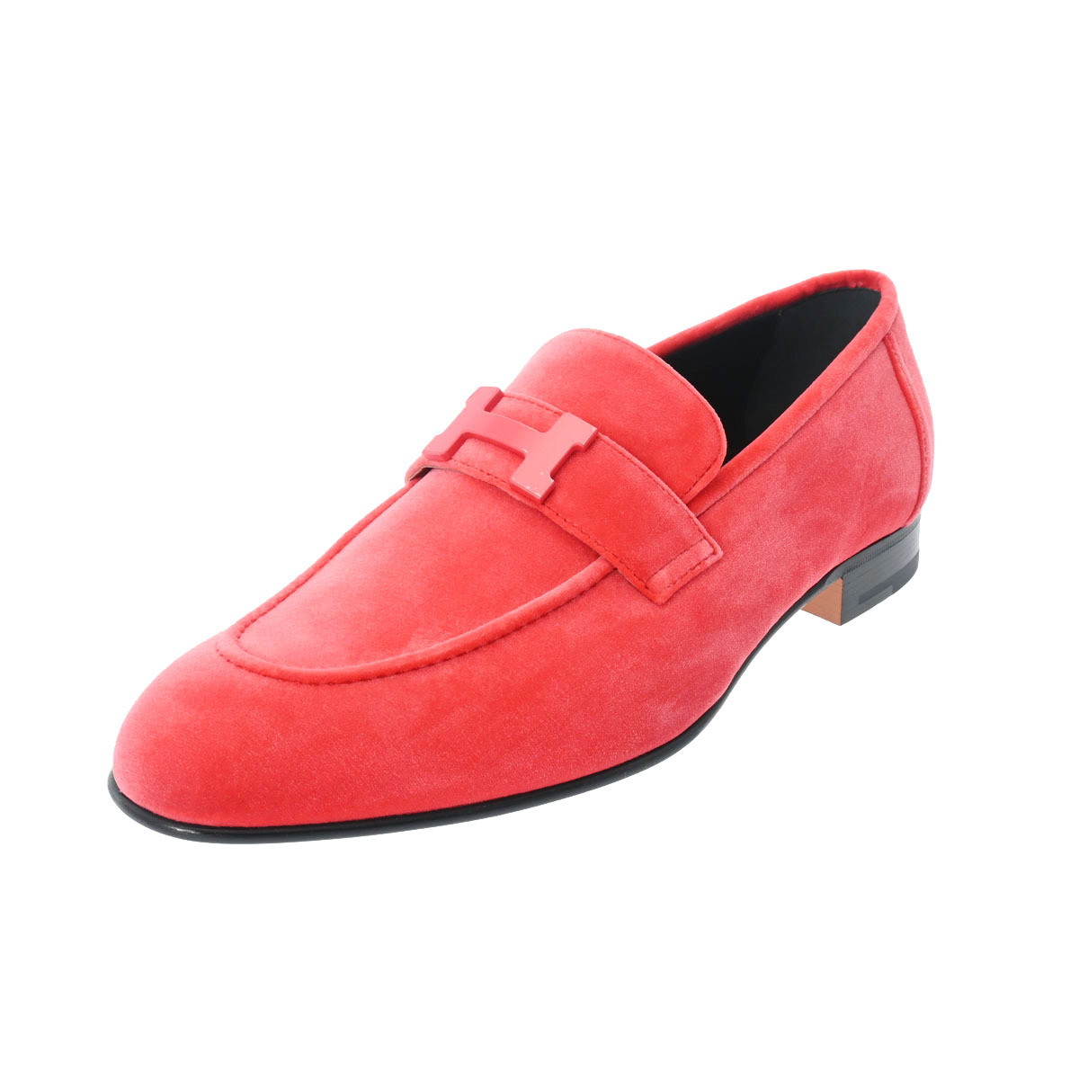 - HERMES エルメス パリ サイズ44 ローズフルーレセント メンズ ベロア モカシン 新品 銀蔵