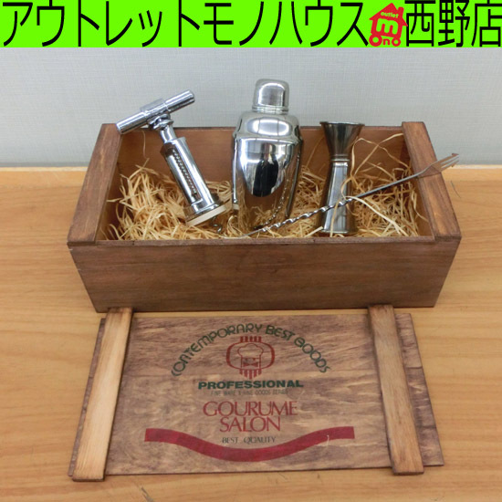 グルメサロン バーセット 4点セット カクテルシェイカー マドラー ジガー オープナー 木製ケース付き GOURME SALON 札幌市 西区