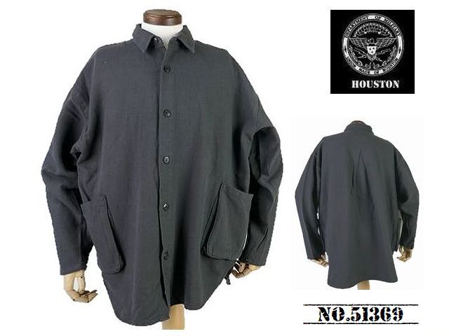 > 【送料無料 32%OFF】HOUSTON ヒューストン コットンリネン ワイドシャツジャケット NO.51369 CHARCOAL_Lサイズ