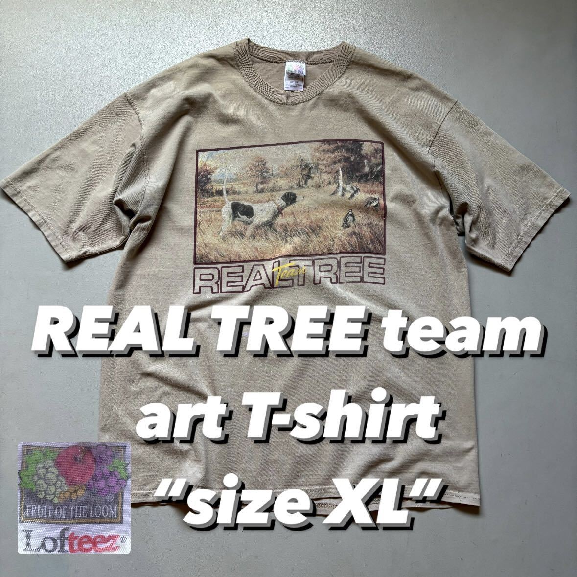 > REAL TREE team art T-shirt “size XL” リアルツリーチーム アートTシャツ 犬Tシャツ ビンテージTシャツ