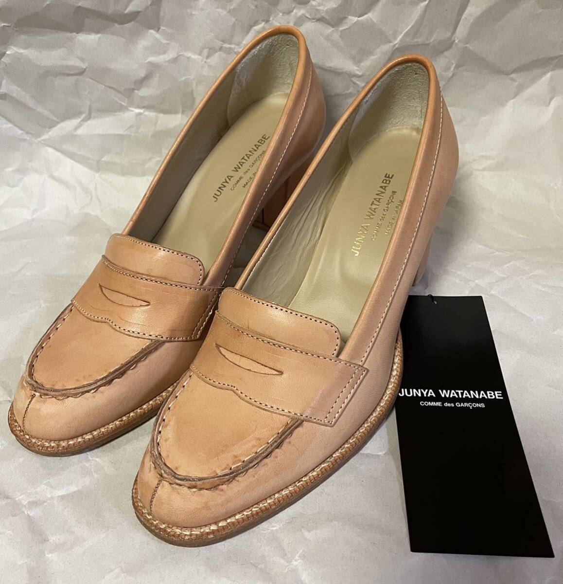 - 新品未使用】 JUNYA WATANABE COMME des GARCONS ジュンヤ ワタナベ コムデギャルソン カウハイド 総ヌメ革 ハイヒール ローファー 2008SS