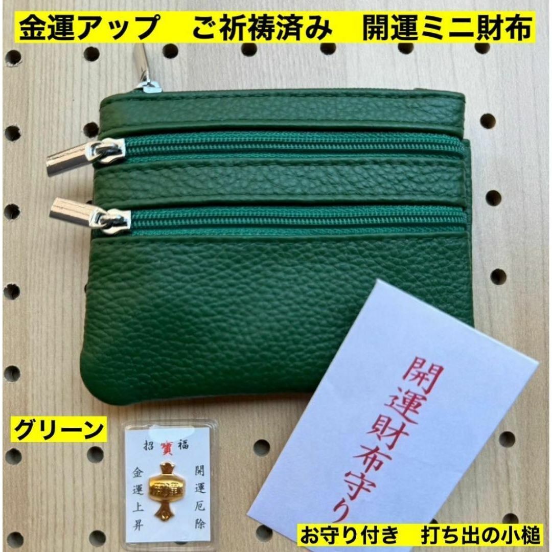 - 金運アップ 牛本革 開運ミニ財布 グリーン 打ち出の小槌 ご祈祷済み 財布 新品